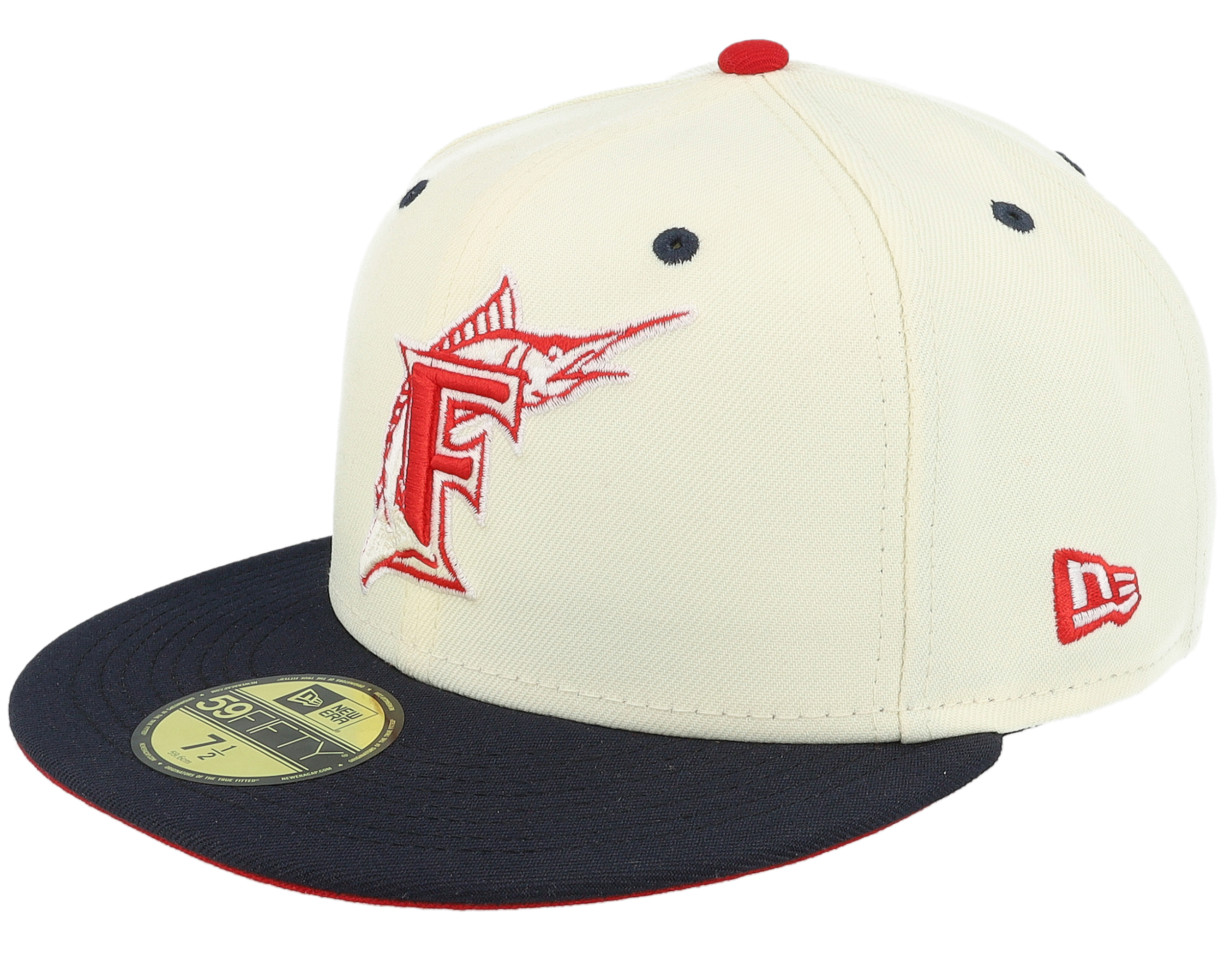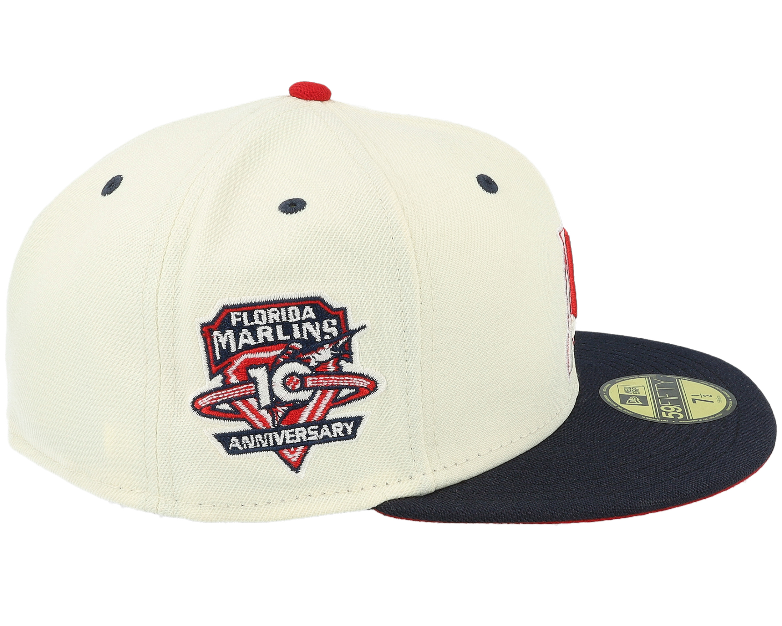 Miami Marlins Scarlet Swirl 59FIFTY 10th Chrome/Navy Fitted